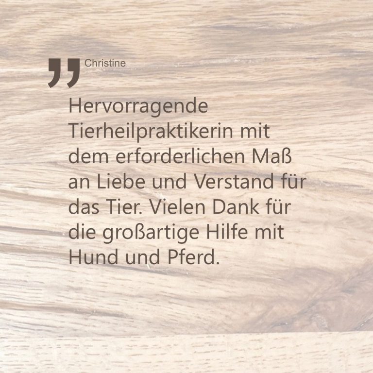Bei meinen Therapien lege ich großen Wert auf ein ganzheitliches Vorgehen und achte zudem besonders auf die Fütterung. Dies ist nur ein kleiner Auszug aus meinem Leben als Tierheilpraktikerin.